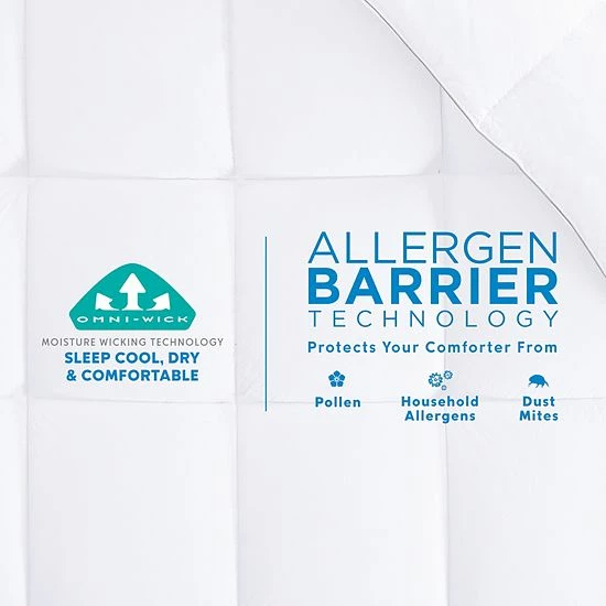 - Rest easy knowing your bed is protected from dust mites, pollen and household allergens. The Columbia Allergen Barrier Comforter is extra plush and cozy, easy care machine wash and effectively protects your bed against allergies for a fresh, healthy and comfortable night’s sleep.